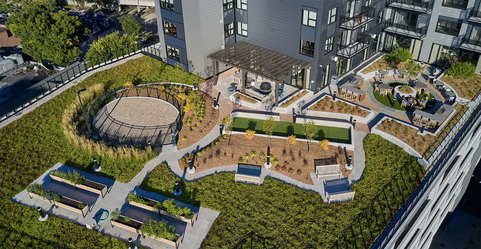 Get ready for the day ahead, or relax as the sun sets within all the green space and native landscaping high above the street.